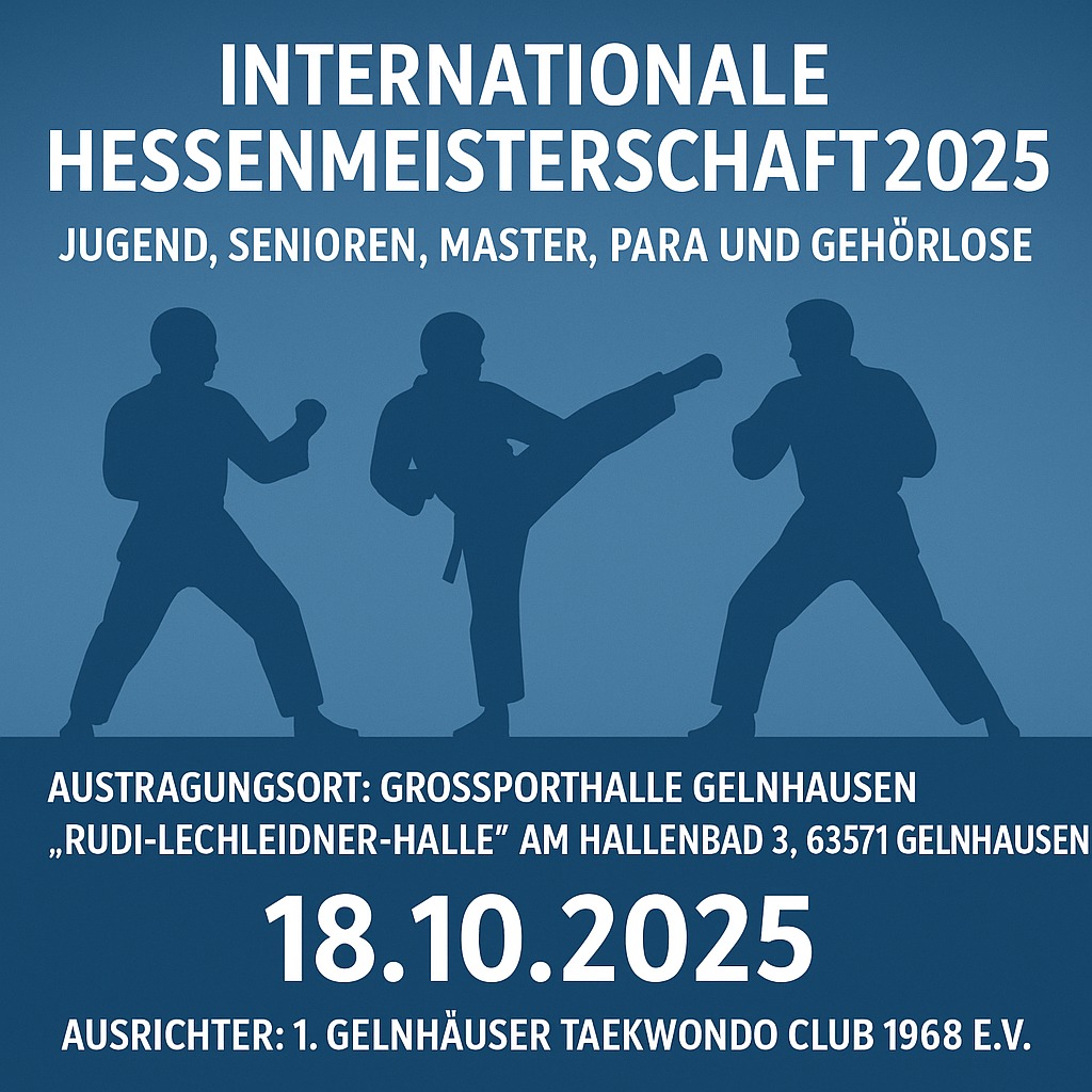 Am 18.10.2025 richten wir die internationale Hessenmeisterschaft 2025 in der Rudi-Lechleidner-Halle Am Hallenbad 3, 63571 in Gelnhausen aus.