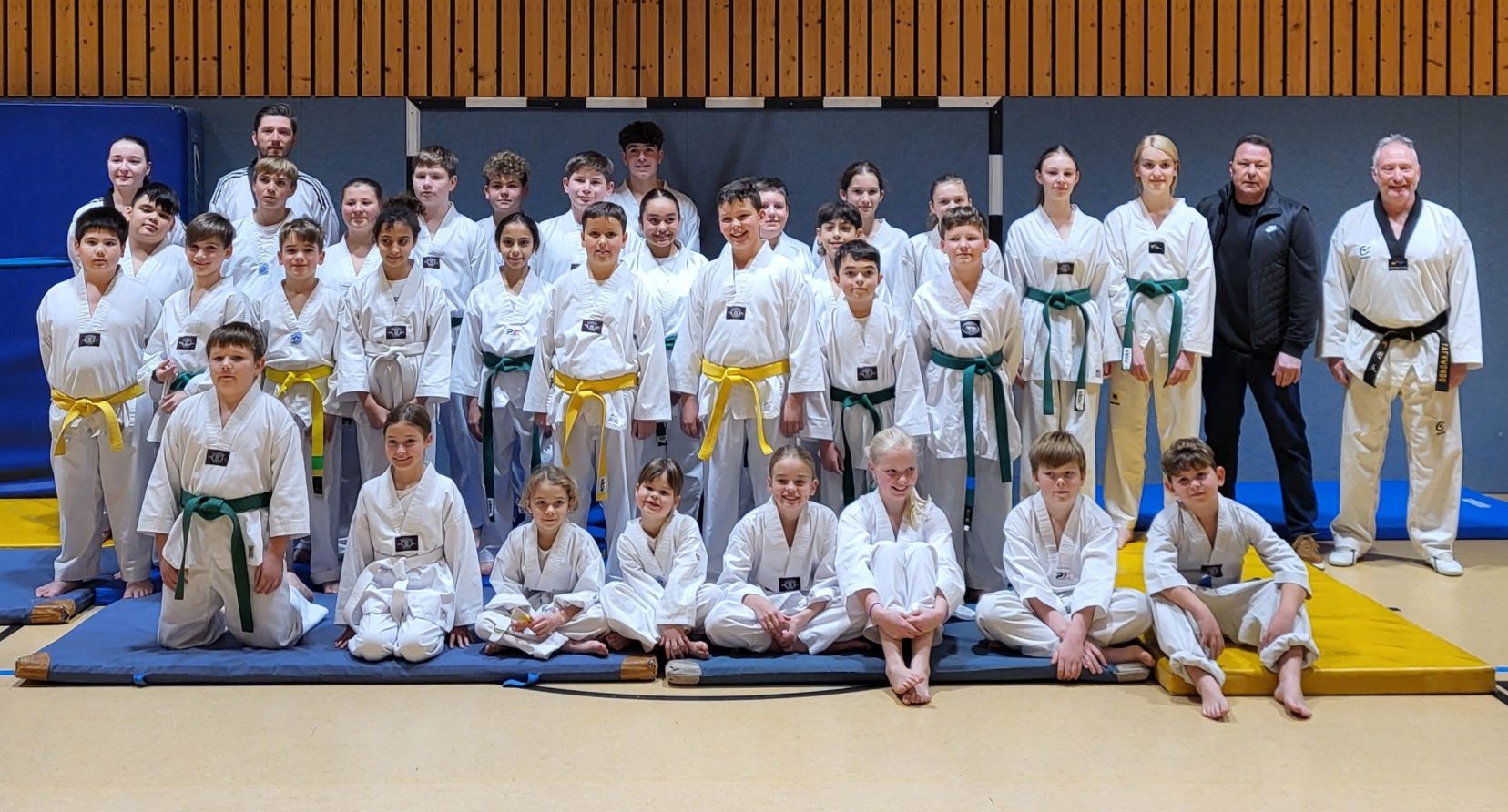 34 Prüflinge stellten sich unter den Augen des Prüfers Jörg Heim und dem Trainerteam Lena Spillmann, Leon Gradwohl und Roland Schmidt den Herausforderungen. Es wurden Elemente aus den Bereichen Formenlauf, Kicktechniken, Zweikampf, Selbstverteidigung und bei den höheren Gürtelgraden auch Bruchtests vorgeführt.